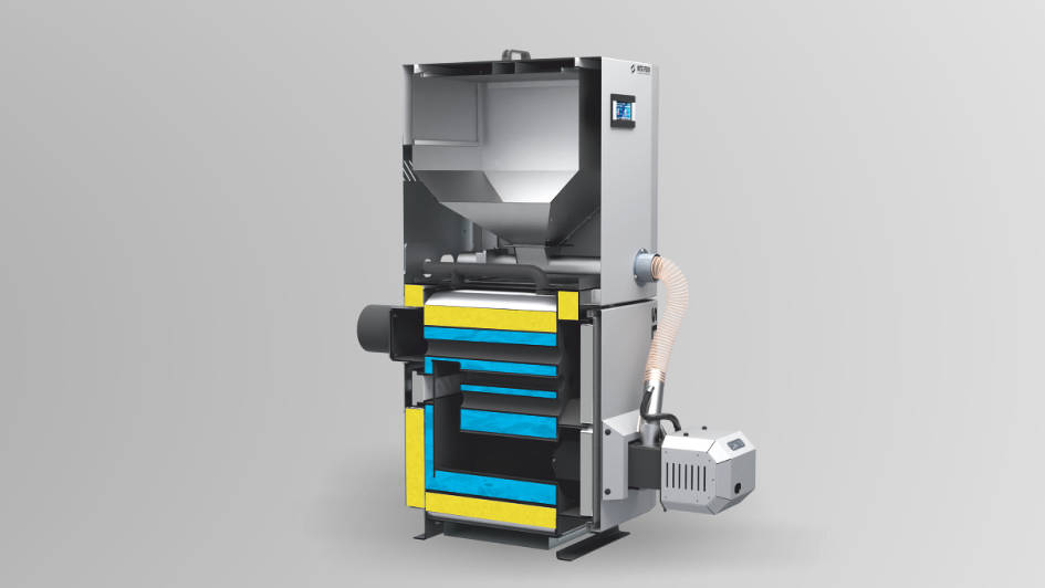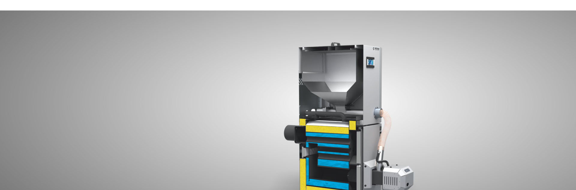 SLIM PELLET 10 - 20kW ir centrālās apkures granulas katls ar automātisku degvielas padevi un degvielas aizdedzināšanu.