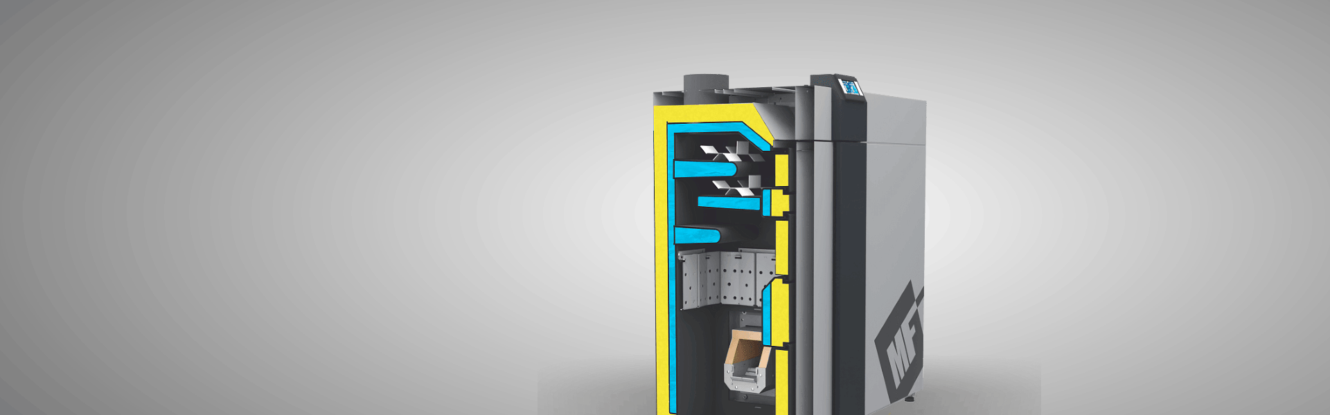 SMART PELLET 16 - 36kW ir centrālās apkures granulas katls ar automātisku kurināmā padevi un kurināmā aizdedzināšanu.
