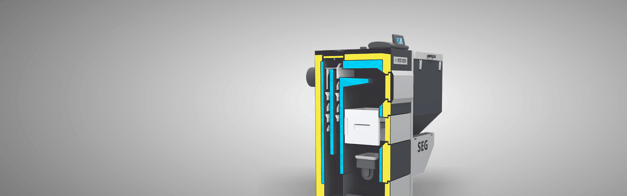 SEG 14 - 75kW ir centrālās apkures granulas katls ar automātisku kurināmā padevi un kurināmā aizdedzināšanu.